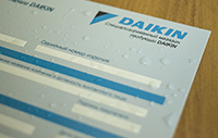 Уважаемые покупатели, в связи с тем, что на российский рынок участились поставки "серой" продукции Daikin, мы приняли решение разработать новый, защищенный гарантийный талон Daikin. Теперь он изготовлен из гибкого пластика и водоустойчив. Кроме того, такой талон сложно помять или испортить. При покупке кондиционера Daikin требуйте новый пластиковый гарантийный талон!