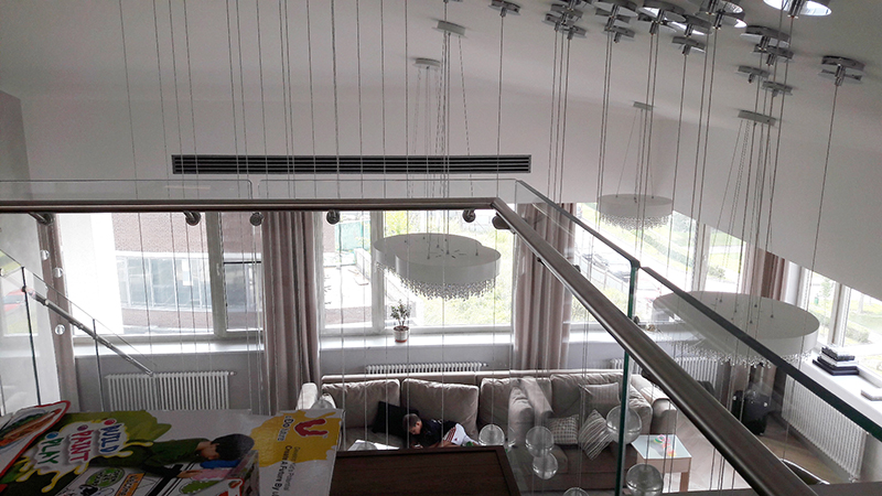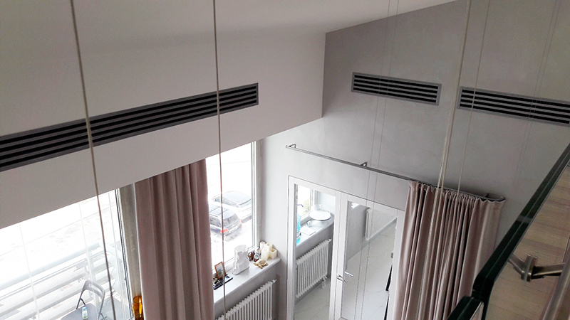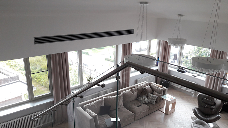 VRV система четвертого поколения Daikin RXYQ-T, а также 8 канальных блоков обеспечивают кондиционирование воздуха на первом этаже дома.