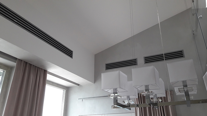 Приток свежего воздуха с улицы, а также вытяжку воздуха из помещения осуществляет приточно-вытяжная установка Amalva.