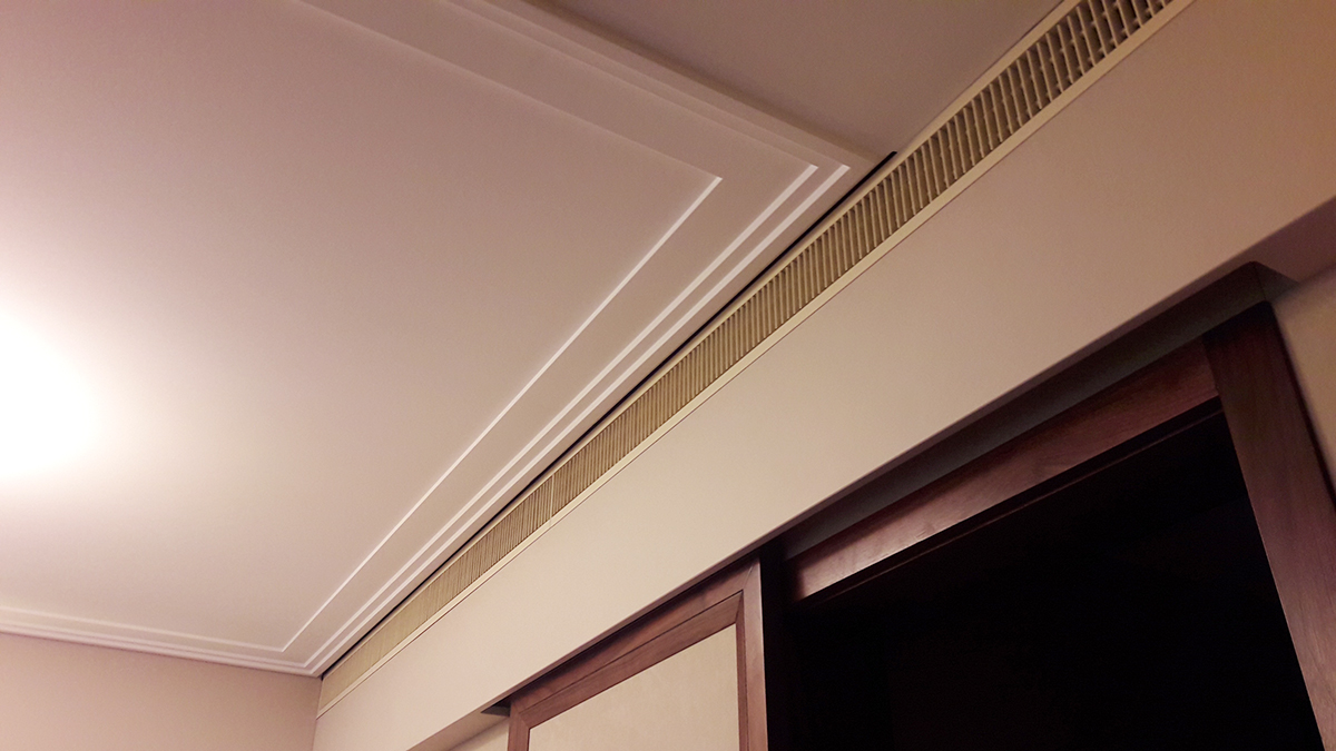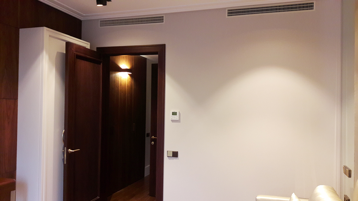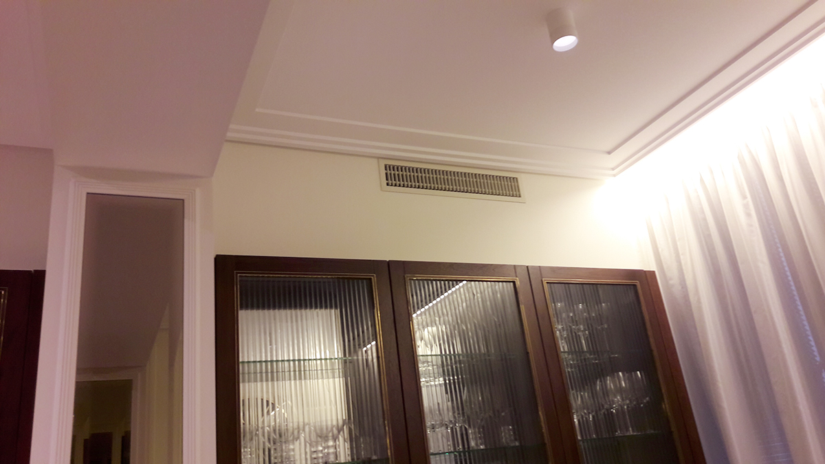 Уважаемые покупатели, в данной галерее представлены фото чистовой отделки проекта, расположенного на улице Плющиха. Это городская квартира, в которой были смонтированы три канальных внутренних блока, а также один наружный блок. Для проекта была выбрана мульти сплит-система, так как проект не очень большой площади - около 100 квадратных метров.