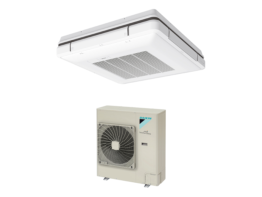 Подпотолочные четырехпоточные кондиционеры Daikin инверторной серии FUA-A / RZQSG из линейки Sky Air прекрасно подходят для помещений без подвесного потолка. Они обеспечивают как охлаждение, так и обогрев при температуре до -15°C, демонстрируя высокий уровень сезонной эффективности с классом «A+». Эти уникальные устройства могут работать как на хладагенте R-410A, так и на экологически безопасном R-32, что делает их универсальными.